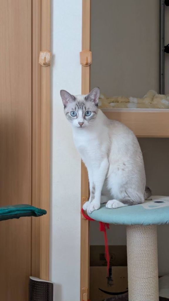 ティーは少し臆病ですが、ナデナデが大好きです。特にお尻をポンポンされるのがお気に入りです。